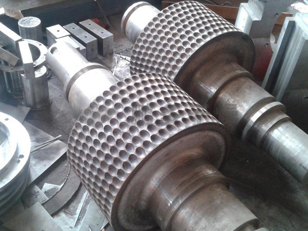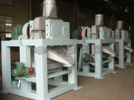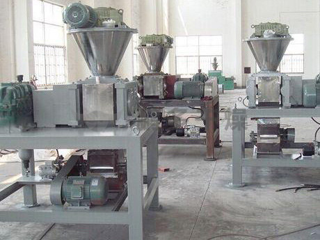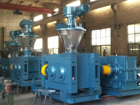 擠壓造粒的形式可以有對輥式和輪輾式兩種,對輥式擠壓是先壓成大塊,再破碎成顆粒,這樣裝置的能力大、顆粒強度高、能耗低,對輥擠壓在國外使用廣泛。輪輾式是在輥表面直接做成有穴槽型的形狀,一次擠成成型顆粒。產(chǎn)品強度較低有時需添加粘結(jié)劑。適合做有機肥和復合肥等顆粒肥料。