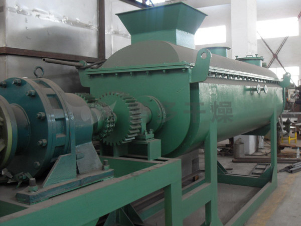 漿葉干燥機已成功地用于食品、化工、石化、染料、工業(yè)污泥等領(lǐng)域。設(shè)備傳熱、冷卻、攪拌的特性使之可以完成以下單元操作:燃燒(低溫)、冷卻、干燥(溶劑回收)加熱(融化)、反應(yīng)和滅菌。攪拌漿葉同時又是傳熱面,使單位有效容積內(nèi)傳熱面積增大,縮短了處理時間。楔型漿葉傳熱面又具有自清潔功能。壓縮--膨脹攪拌功能使物料混和均勻。物料沿軸向成"活塞流"運動,在軸向區(qū)間內(nèi),物料的溫度、濕度、混合度梯度很小。用導(dǎo)熱油做熱介質(zhì)漿葉干燥機可完成低溫燃燒工作。如:二水硫酸鈣(Ca2SO4·2H2O) 燃燒轉(zhuǎn)化為半水硫酸鈣(Ca2SO4·1/22H2O)。碳酸氫鈉(NaHCO3)經(jīng)煅燒轉(zhuǎn)化為純堿(Na2HCO3)等。通入冷卻介質(zhì),如水、冷卻鹽水等即可用來冷卻。如:使用于純堿行業(yè)的漿葉式?jīng)鰤A機,取代老式的空氣冷卻涼堿機,節(jié)省了能源及尾氣處理設(shè)備,降低了操作費用。干燥,設(shè)備最主要的功能,不使用熱空氣,使溶劑回收、能源消耗、環(huán)境控制處于易處理的理想狀態(tài)。對需回收溶劑、易燃易氧化熱敏性物料尤為適應(yīng)。已廣泛用于精細化工、石化、染料行業(yè)。軸向區(qū)間內(nèi),溫度、濕度、混合度的均勻性,使得設(shè)備可用來加熱或融化,或進行一些固體物料反應(yīng)。在復(fù)合肥及變性淀粉行業(yè)均已成功使用。漿葉干燥機可用來對食物和面粉進行滅菌處理。單位有效容積內(nèi)大的加熱面積,很快就將物料加熱到滅菌溫度,避免了長時間加熱而改變物料品質(zhì)。