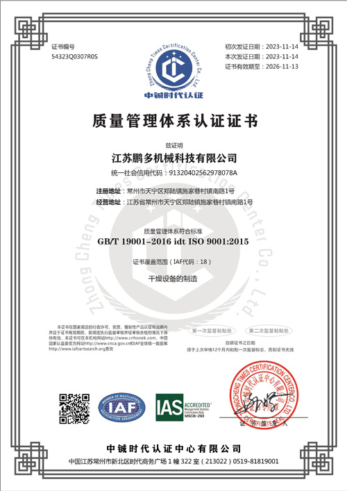質(zhì)量管理體系認(rèn)證證書中文